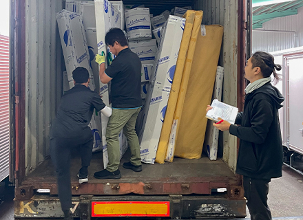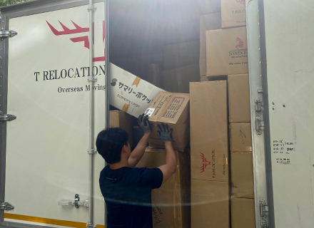 - 포장이 완료된 이사화물은 현지 파트너사 물류센터로 이동하여 컨테이너에 적재됩니다.